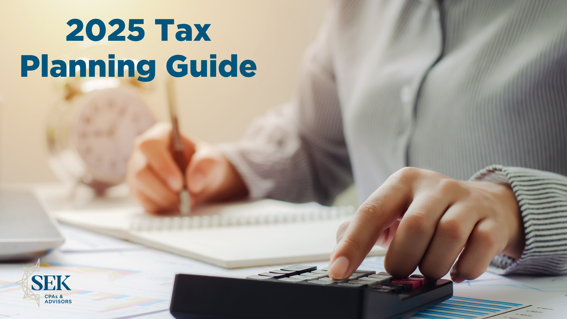 At SEK, we are dedicated to helping you maximize your income through a variety of tax-saving strategies. We are excited to share our 2025 Year-End Year-Round Tax Planning Guide, which includes:
