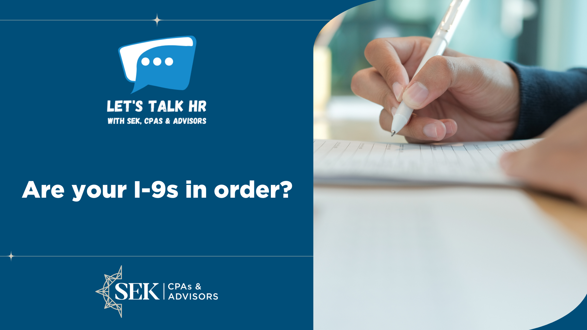 If you need assistance, SEK can guide you through the I-9 review process, answer your questions, and even perform a comprehensive I-9 audit to ensure your organization is compliant.