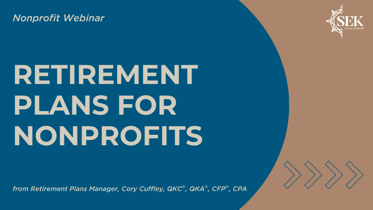 In this video, Retirement Plans Manager Cory Cuffley reviews key considerations for nonprofit retirement plans, including: